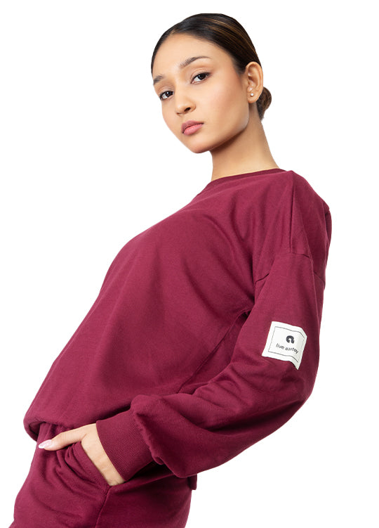 our get cosy sweatshirts for women come in two sleek stylish colours - olive green and burgundy maroon - so you can style with any and all colours to reflect your mood and vibe.