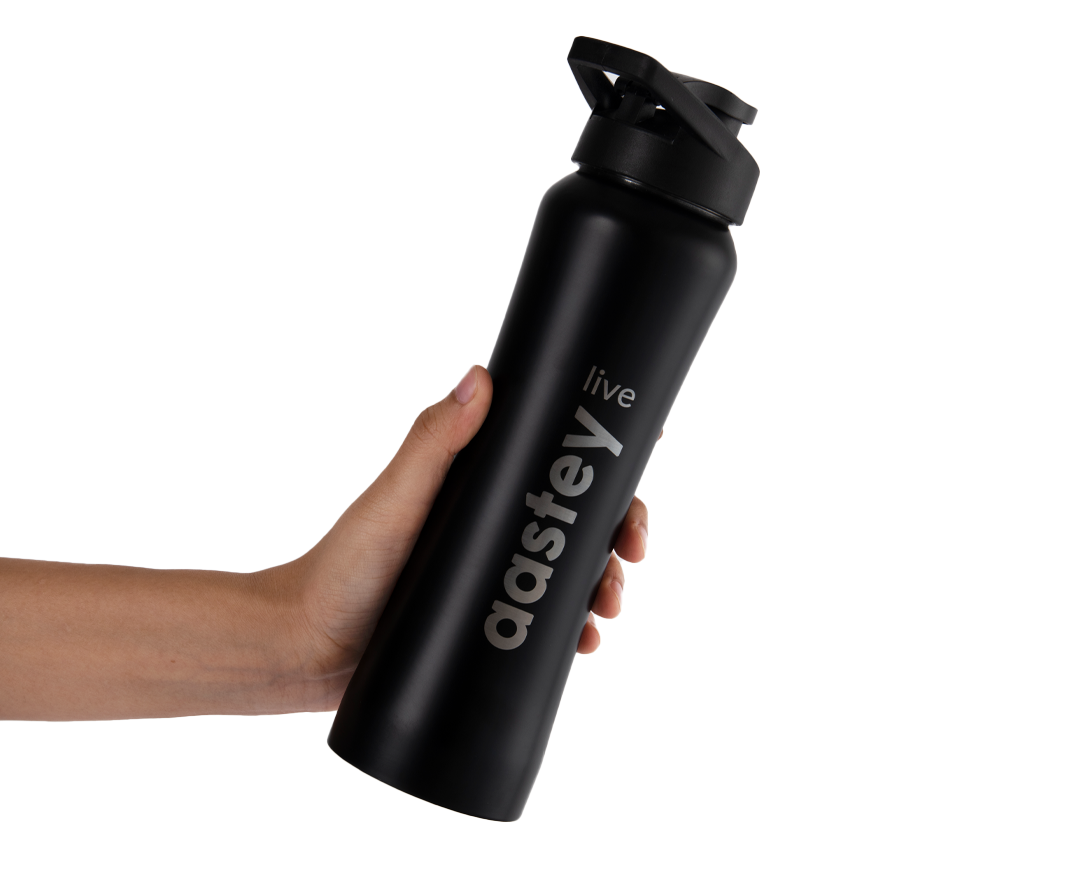 the midnight black hydro boost bottle will add an edge to every outfit while reminding you to hydrate and live aastey.