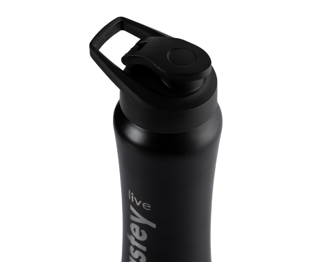 ● the midnight black hydro boost water bottle with the perfect matte finish is crafted to be the companion to all your adventures and daily hydration routines. these food-grade stainless steel water bottles are odour free and toxin free for your sustainable daily use.