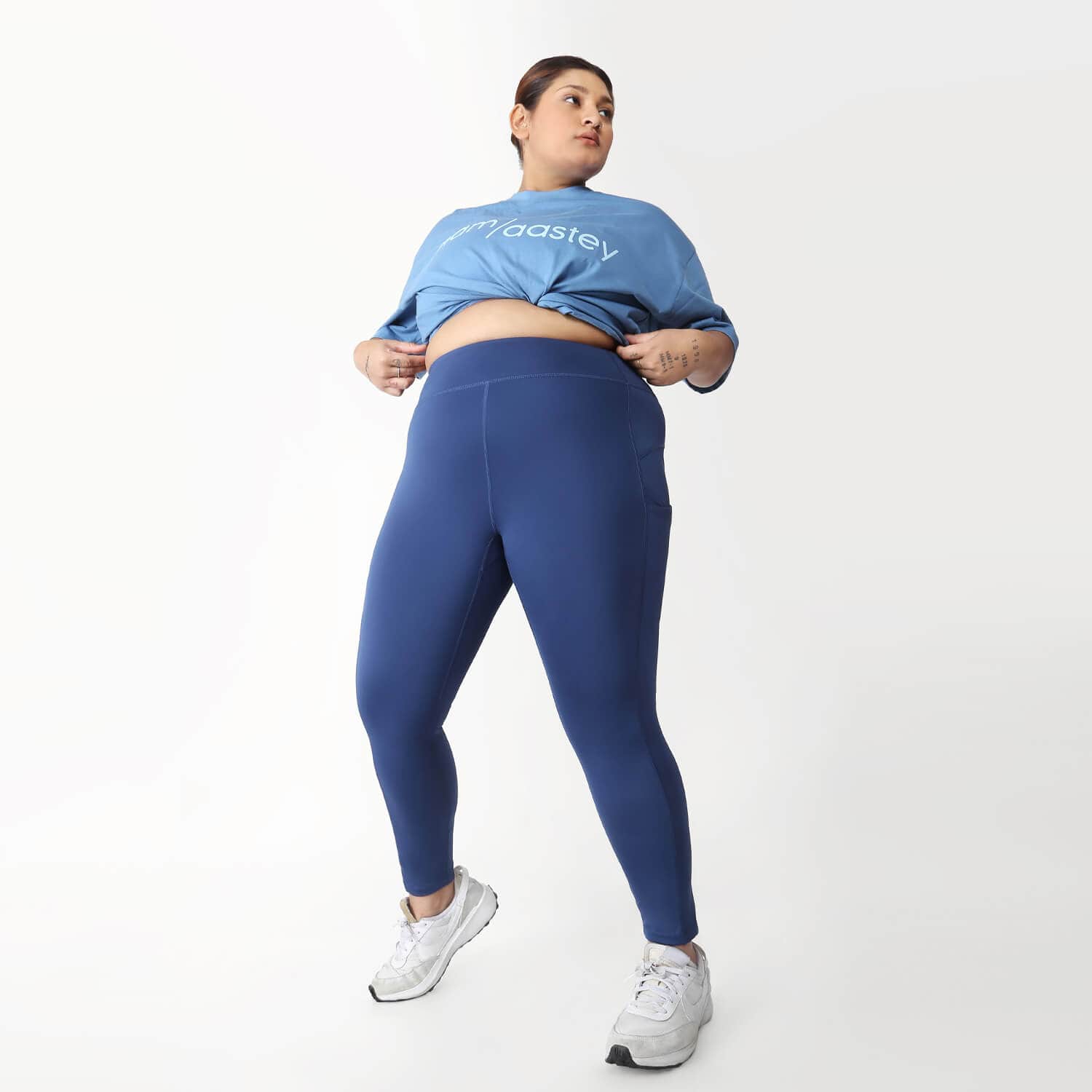 our favourite recycled polyester blend, aastey flex is back with the softest ankle length leggings, crafted to provide a comfortable and supportive fit, allowing you to move freely during workouts or daily activities.