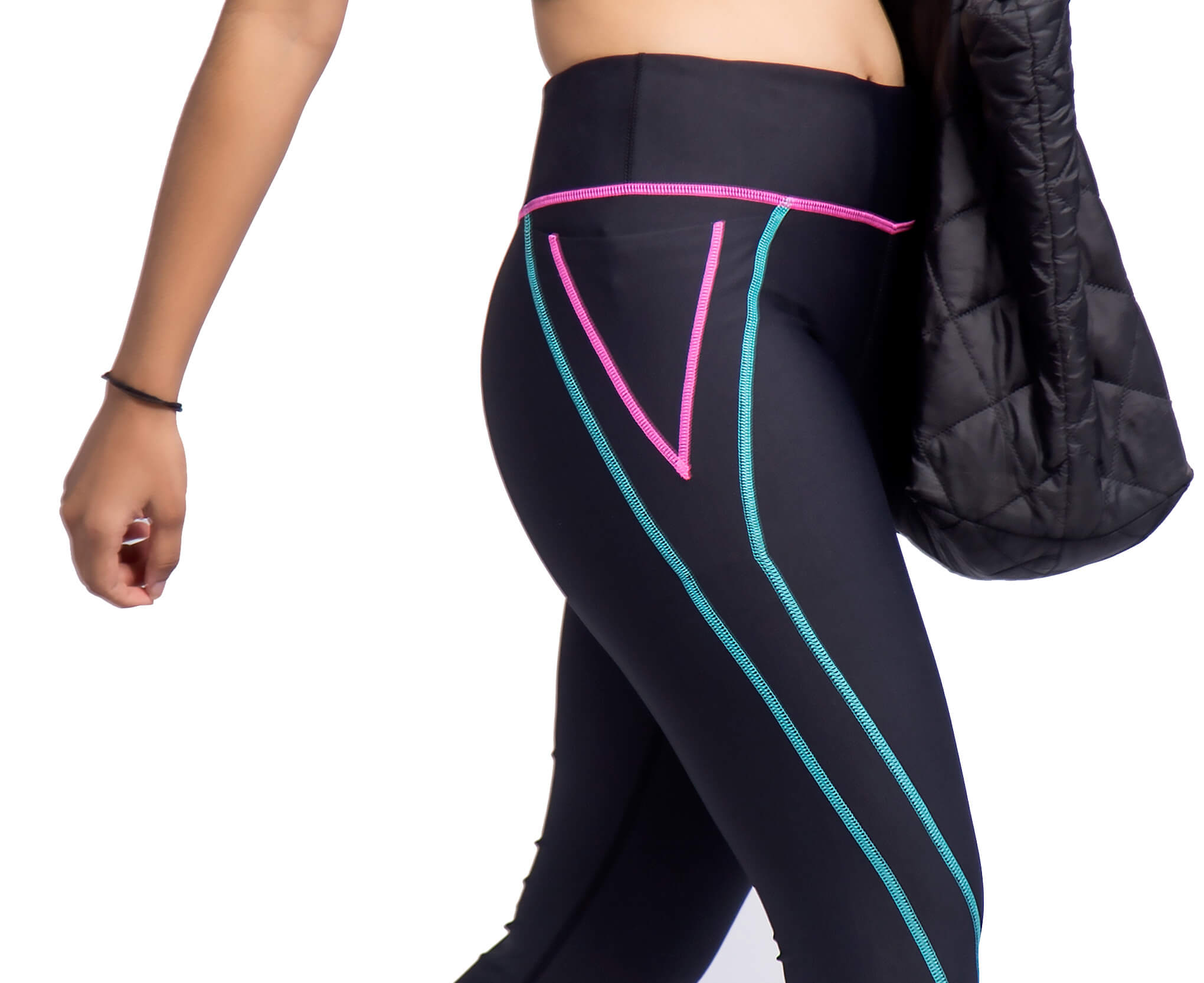 Skin hugging, but breathable fit. The bright colour piping creates a flattering design for your lower body.