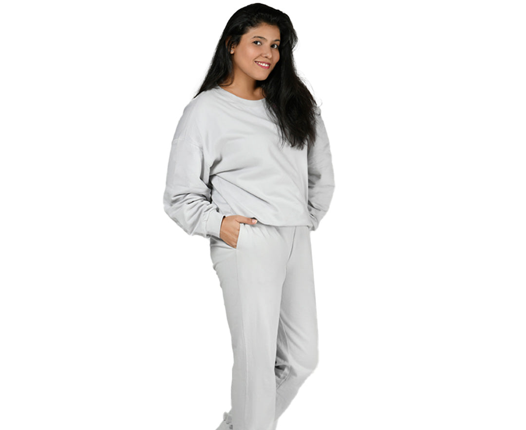 the specially knit fabric of these women cotton sweatshirts and joggers will give you the perfect stretch so you can glide through your day-to-day chores without any hassle. these pullover sweatshirts have an oversized fit which allows you to look chic and cool with a refreshing vibe. the high-waisted joggers have a regular fit for a sophisticated and classy look. the ribbed waist can be adjusted with a high quality drawstring. the sweatshirt and joggers are also good for workout or any other leisure activity with pockets so you don’t have to worry about your phones, keys or your other essentials.